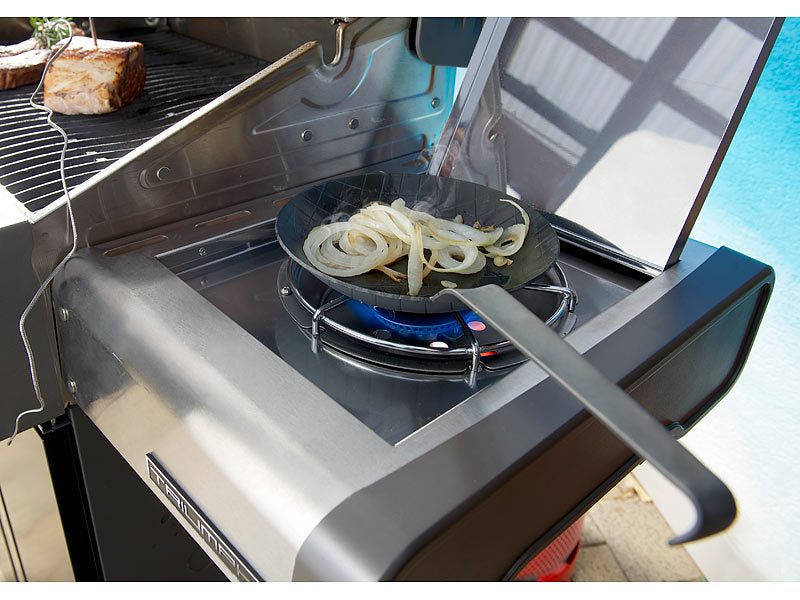The Smokey Hill frying pan is ideal for frying while camping. It is perfect on open fire. After a while pans made of sheet iron darken. Since it has a long handle , it is easy to hang it up and store it in the protective bag that is included in the scope of delivery.